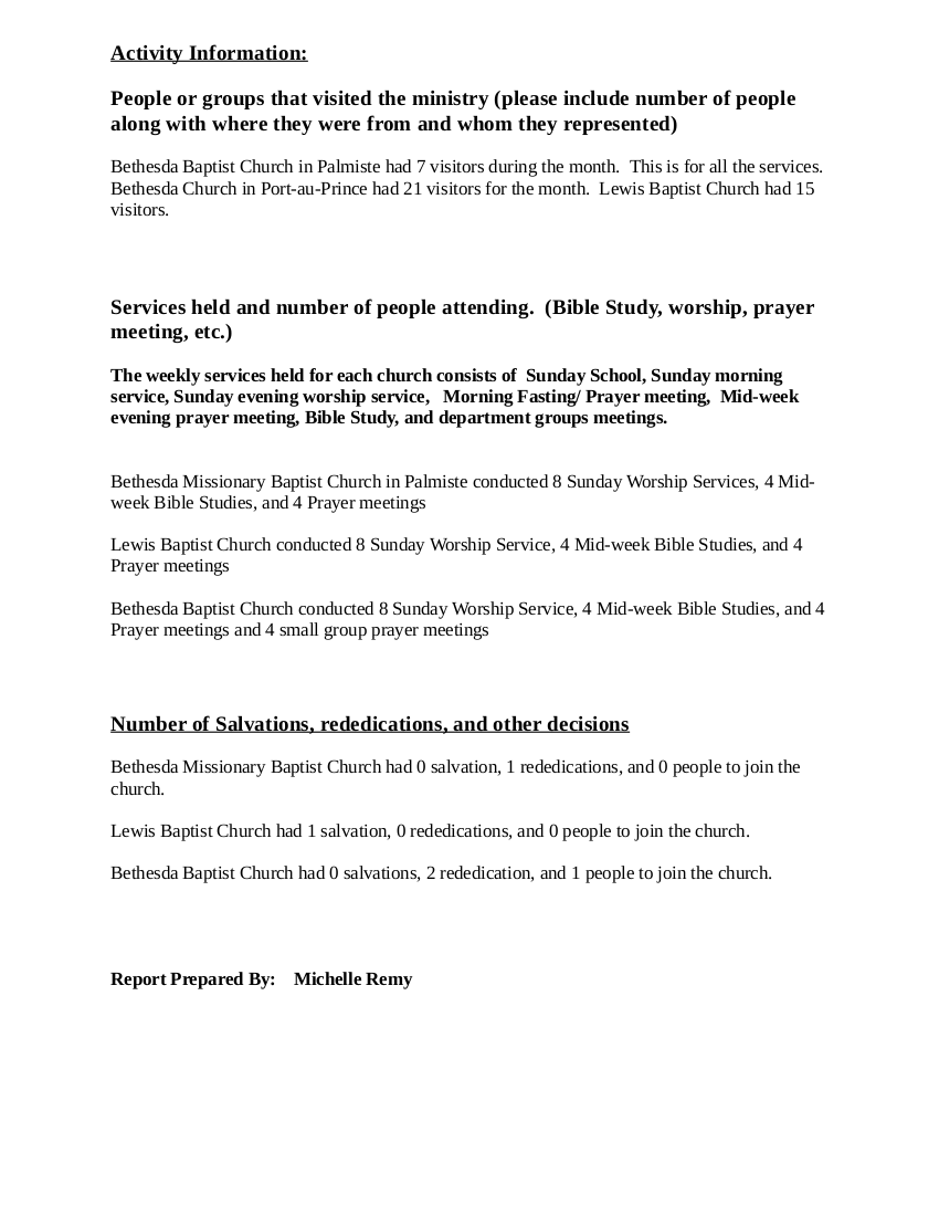 In the 1970s, Michelle Remy's father, Mike, began his ministry in Haiti by starting 3 Christian churches. Today, Michelle is in now in charge of this ministry and the schools supported by it. As a native of Haiti, Michelle knows and understands the urgent need for Christian ministry in this country as well as the hardships that have been faced by people there. From frequent government changes, to an earthquake and many hurricanes, Haiti has been devastated numerous times. The need is greater than ever for more people to hear the Gospel and repairs to be made, both spiritually and physically. Michelle's ministry helps to do just that, but the natural disasters have taken a toll on her churches and schools.